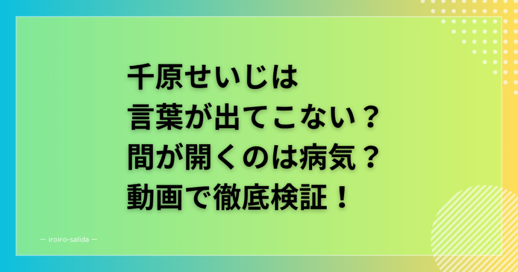 千原せいじは言葉が出てこない?間が開くのは病気?動画で徹底検証!