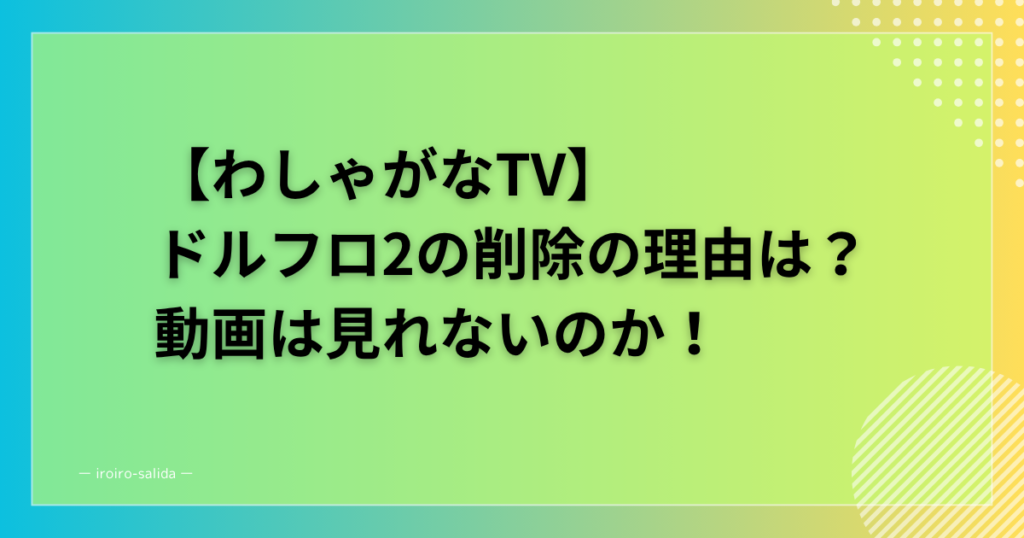 【わしゃがなTV】ドルフロ2の削除の理由は?動画は見れないのか!