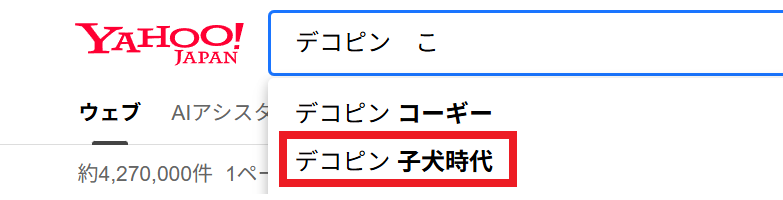 Yahoo!の検索窓に『デコピン こ』を入力すると