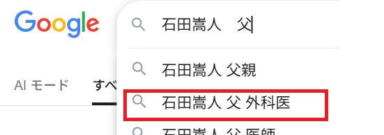 Googleで 『石田嵩人 父』と検索すると