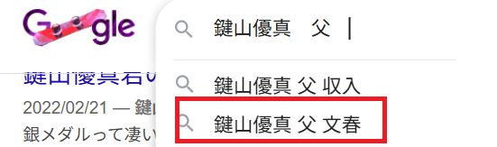 Googleで検索窓で、『鍵山優真 父』と検索すると、検索窓に