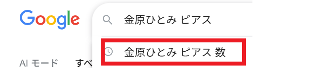 Googleの検索窓で『金原ひとみ ピアス』と入力すると