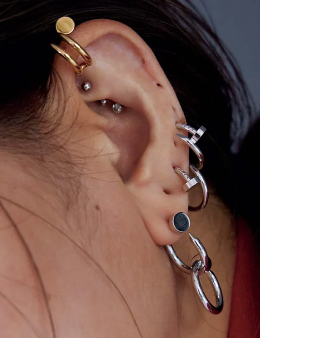 | 20代後半〜 | 右フォワードヘリックス(耳の穴のすぐ近く、顔の付け根部分にある軟骨) | 耳の仕上げとして。 三連にする可能性も考慮し、プロと相談しながら配置。 |