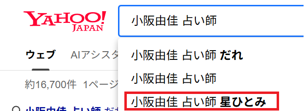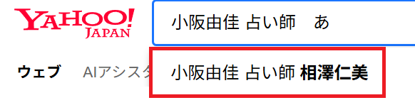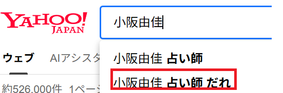 Yahoo!で検索窓に『小阪由佳 占い師 あ』と入れると