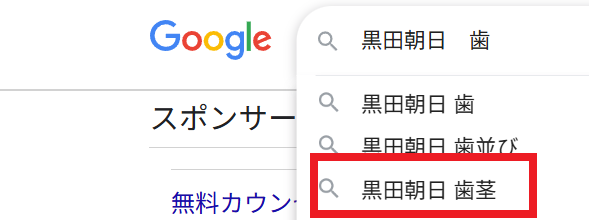 Yahoo!の検索窓に 『黒田朝日 歯』と入力すると
