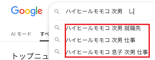 これは、ハイヒールモモコさんの次男さんがどこに就職して、何の仕事をしているのか気になる人が多いということですよね。