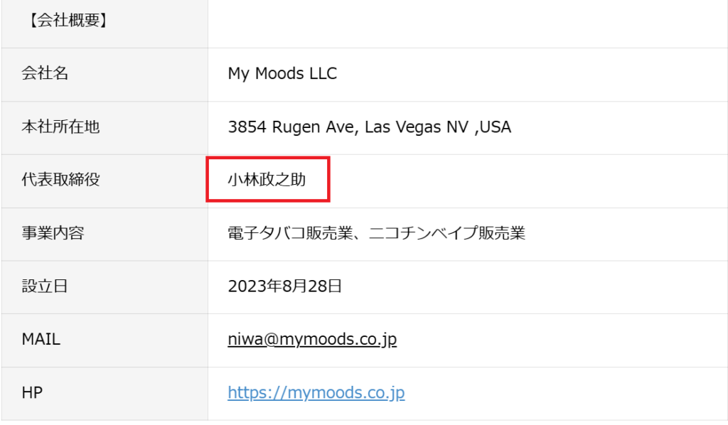 ただし、公式ホームページを見てみると、代表取締役が小林政之助さんの名前では無く、別の方の名前でした。