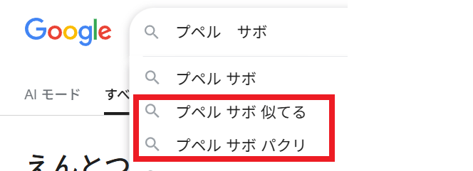 Googleの検索窓に『プペル サボ』と入力すると