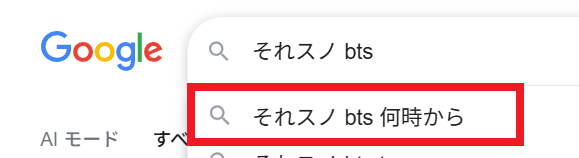 Googleの検索窓で『それスノ BTS』と入力すると
